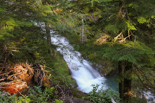 We hiked cross country to get to the top of Spirit Falls. Hiking off trail is very hard and exhausting but we were able to do it. I didn't want to get too close to the edge since I have a fear of heights so M took this picture. It was really high up.We continued on our hike to Moon Falls. It was another tall fall with water cascading down 120 feet of basalt steps. We were able to hike up close and get some pictures right next to the fall.